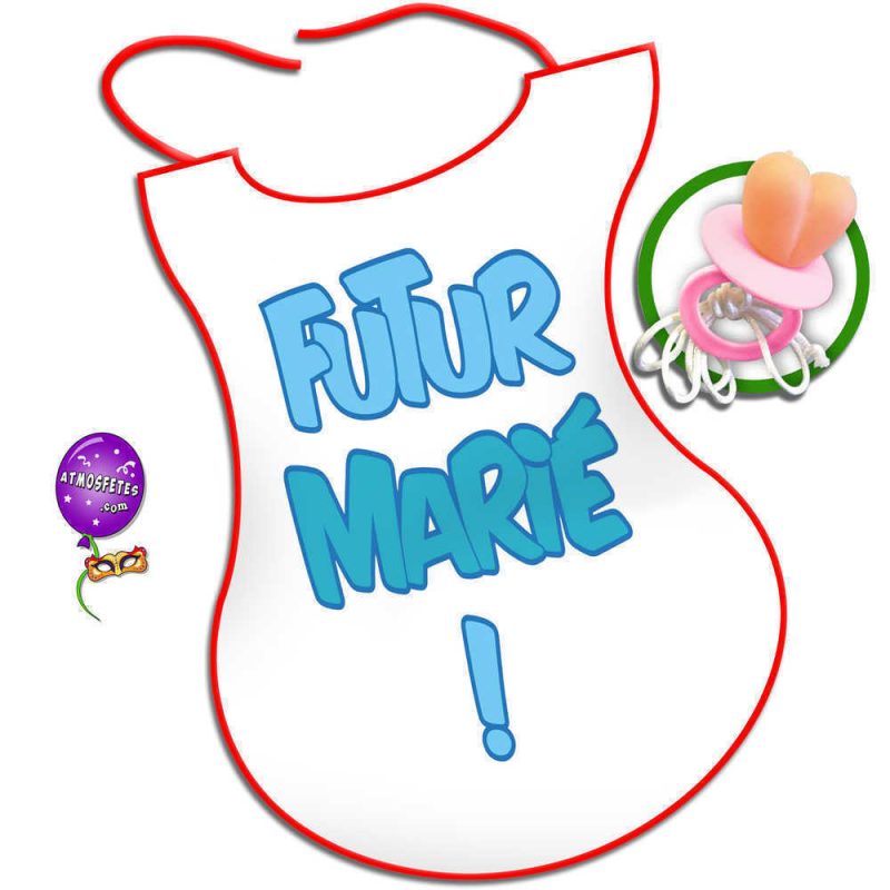 bavoir humoristique futur marié mariage lui homme humour bavures baver bavette bébé saliver drôle blague farce gag amusant tétine totoche seins nichons nénés lolos roploplos nibards rigolo marrant rire invités convives