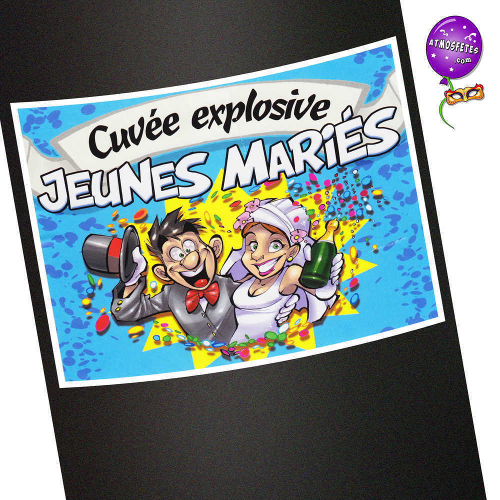 bouteille de champagne à confettis et serpentins pétillante cotillons multicolores mariage mariés explosion grand cru canon nouba convives festivités bringue déluge avalanche invités convives table repas famille répandre déverser