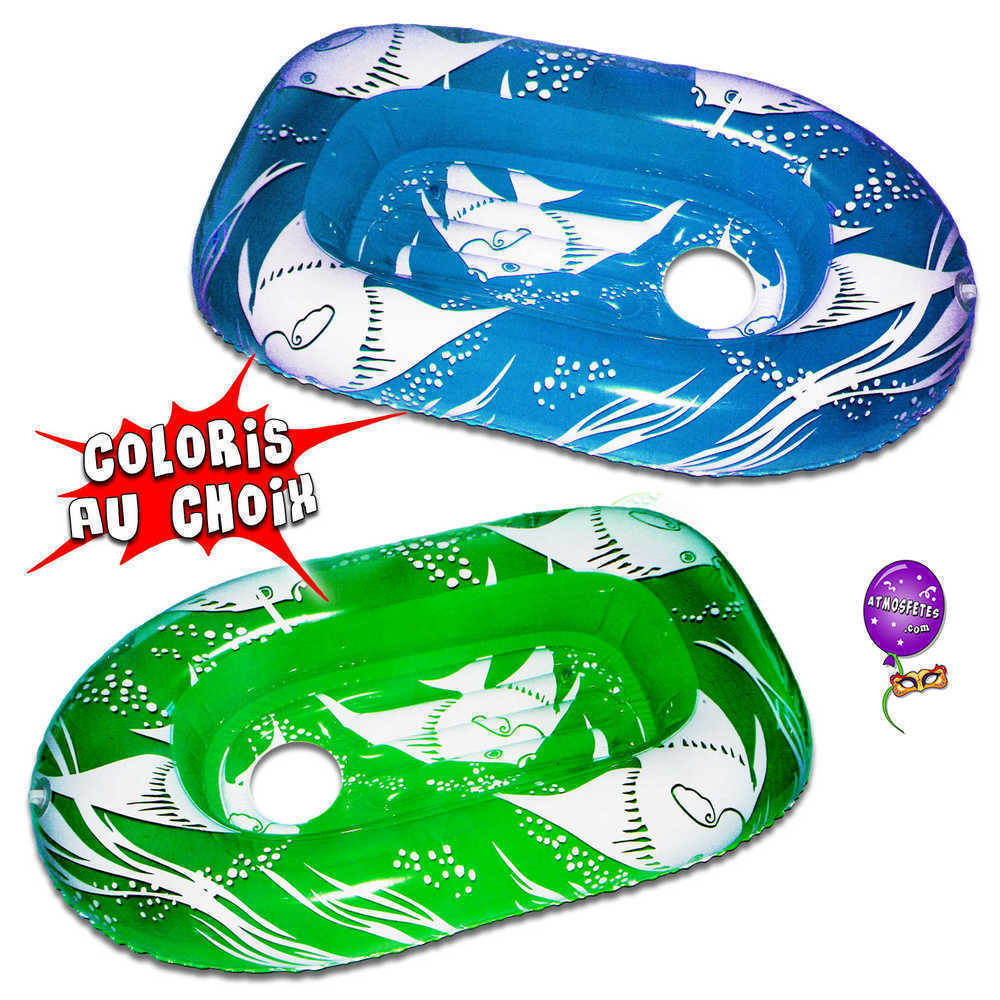 • Bateau Gonflable décoré + lucarne : Canoë gonflable, taille 115 x 71 cm, matière vinyle, équipé de 2 valves anti-retour, charge maximale 30 kg, rames non incluses.