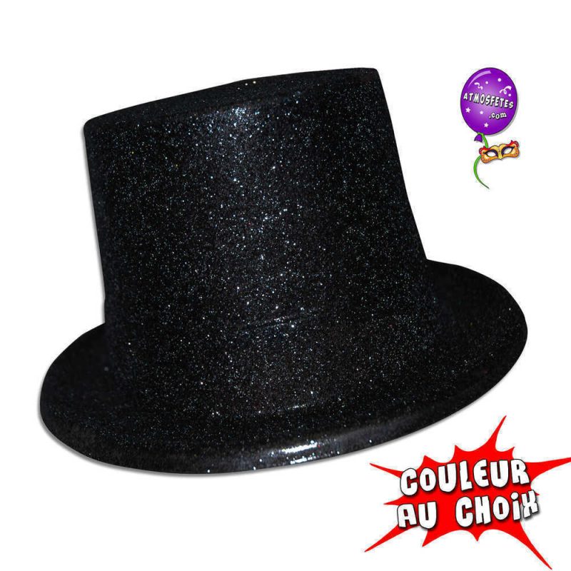 Chapeau haut-de-forme dit « HDF » à paillettes brillantes chic et élégant, matière plastique rigide, coloris au choix, prix unitaire. Taille unique adulte, (tour de tête 58 cm).