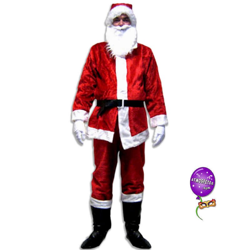 costume de père noël déguisement déguiser habit luxe fourrure qualité supérieure veste pantalon petit papa noël cadeaux sapin jouets enfants réveillon rouge blanc barbe hotte traîneau rennes cheminée joyeuses fêtes 25 décembre joujoux