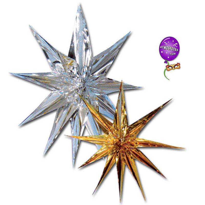 Superbe étoile brillante en volume à déployer et suspendre ou à fixer à l’aide d’une punaise. Décoration réutilisable à volonté. Matière plastique, hauteur 50 cm, coloris au choix : argent ou or, (prix unitaire).