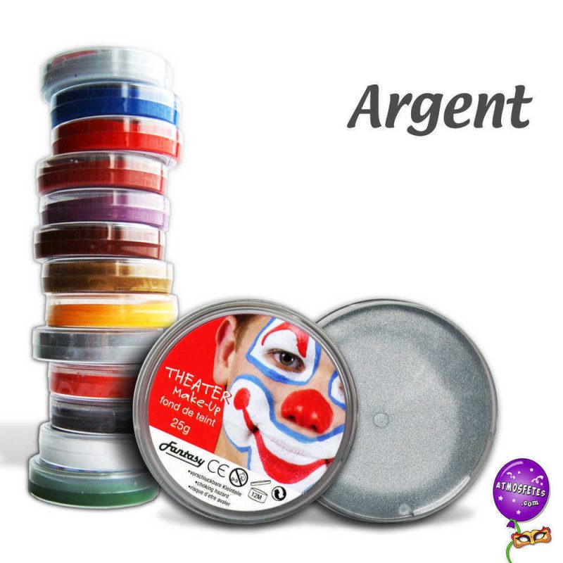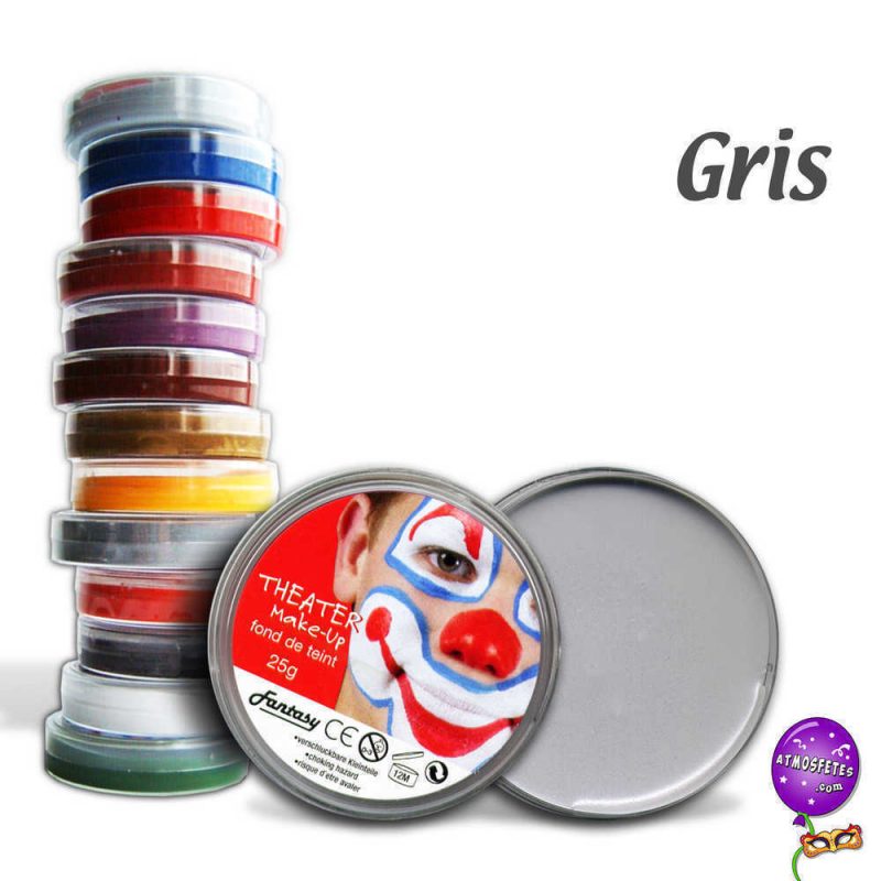 Fond de teint de qualité professionnelle, non toxique, poids net 25 gr, diamètre boîte 6 cm, épaisseur 1,5 cm, couleur au choix, prix unitaire.
