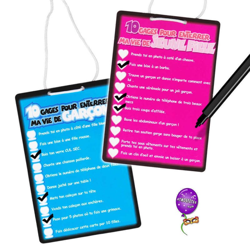 10 gages à accomplir plus drôles les uns que les autres, parfois au culot. Taille carton 11 x 16 cm, modèle au choix pour homme ou femme, marqueur non fourni, prix unitaire.