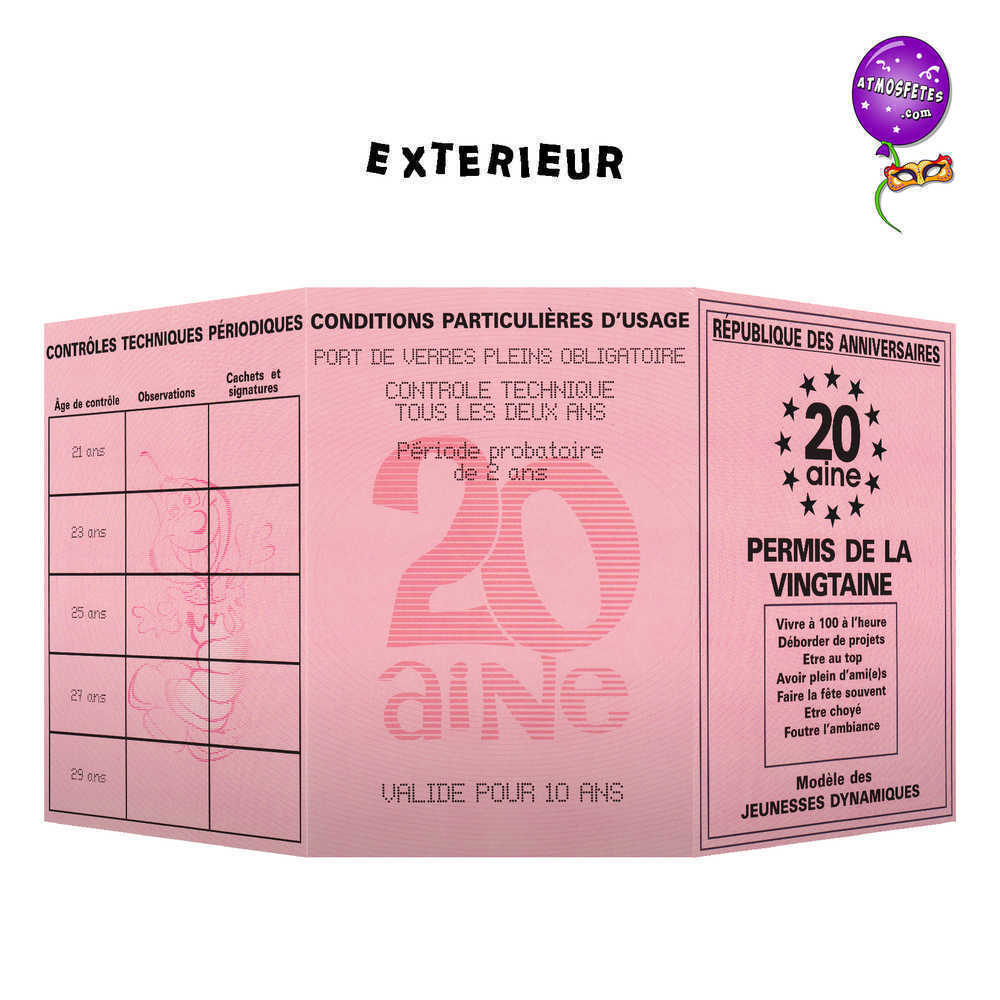 permis anniversaire 20 ans vingtaine vingt ans âge autorisation autoriser papier rose cadeau d’anniversaire humoristique humour document officiel permission droit approbation passeport carte carton homologué permis de conduire