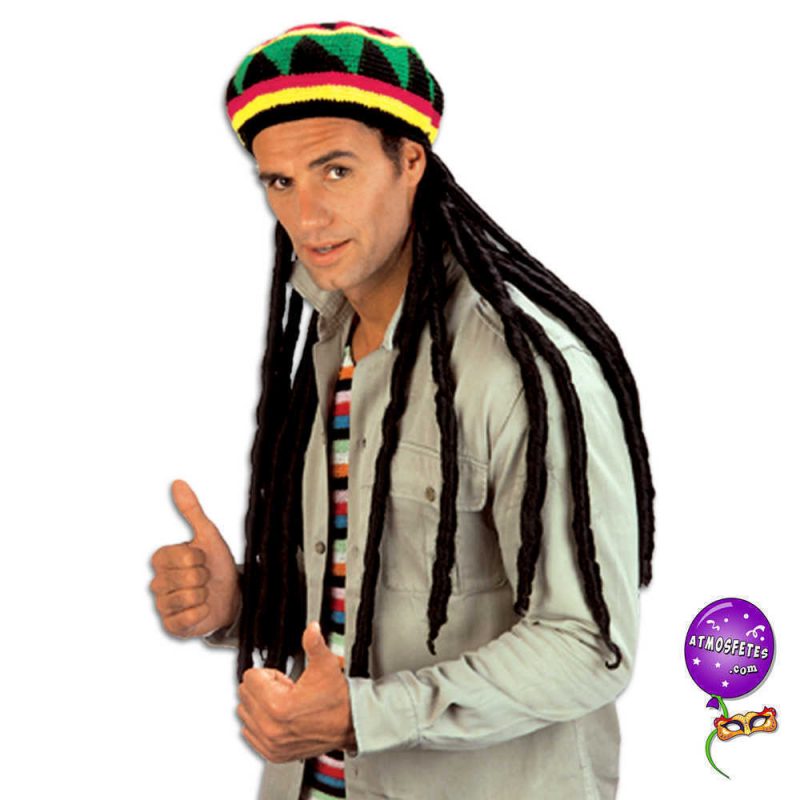 perruque à dread locks bonnet rasta dreadlocks rastaman cheveux moutonnés cool man cadenettes jamaïque doc gynéco se déguiser en noir accessoire de déguisement bob marley mouvement rastafari tignasse mal peigné joint cheveux en pétard
